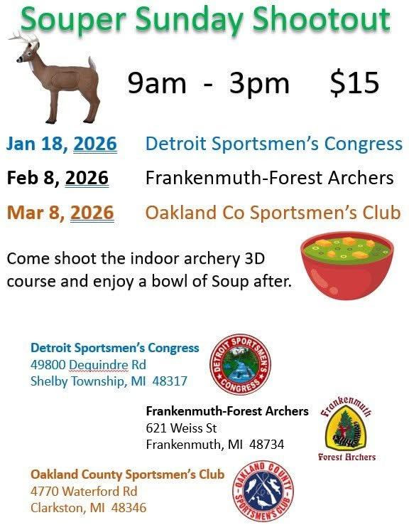 Saturday, March 7 @ 7 pm thru Sunday 8 am prior the Indoor Souper Sunday 3D Shoot.